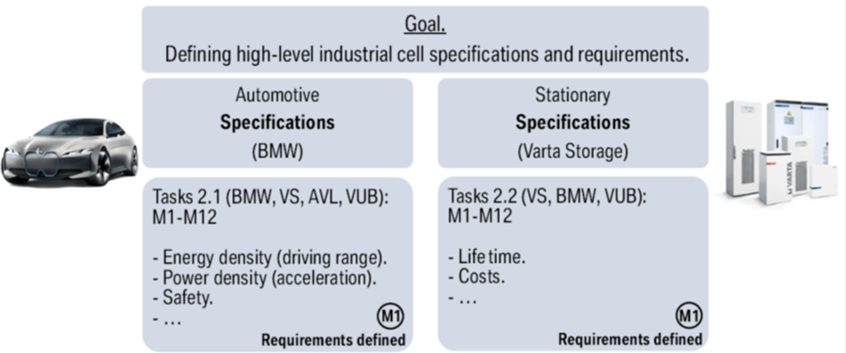 Fig. 1: WP2: Li-Ion cell specification and requirement (BMW, VS, AVL, VUB)