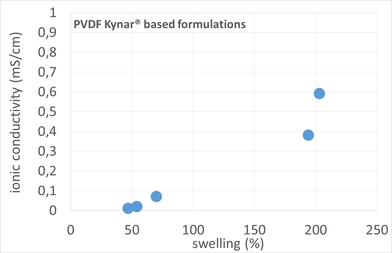 Fig: 5: Diagram lithium-ion conductivity versus GEPE swelling (ARKEMA)